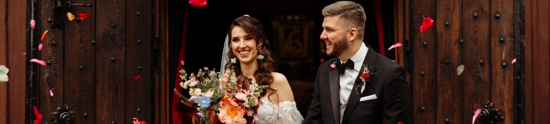 Zaraz po ceremonii wydarzyło się coś, co sprawiło, że ten dzień stał się jeszcze bardziej magiczny. Kiedy Karolina i Czarek wyszli z kościoła, zostali obsypani deszczem płatków kwiatów – jakby całe otoczenie chciało pobłogosławić ich miłość. Śmiech, radość i wzruszenie wypełniły tę chwilę, a my miałyśmy przywilej uchwycenia tego wszystkiego na zdjęciach. To właśnie te autentyczne emocje sprawiają, że fotografia ślubna ma w sobie coś niezwykłego.