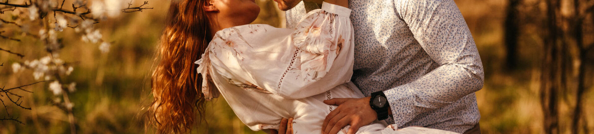 Spotkaliśmy się w miejscu, które pachniało wiosną – ale nie tylko naturą. Pachniało świeżym początkiem, zaufaniem i radością bycia razem. Białe i różowe kwiaty drzew otulały ich niczym miękki obłok, a oni – zapatrzeni w siebie – spacerowali między gałęziami, śmiali się, tulili. Bez pozowania, bez udawania.